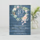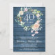 Com uma delicada grinalda de flores de aguarela sobre painéis de madeira rústica azul, este convite de aniversário de casamento botânico chic pode ser personalizado com as suas informações especiais de aniversário de rubi. O verso apresenta uma grinalda floral correspondente emoldurando as datas do seu aniversário em texto branco elegante sobre um fundo rubi. Concebido por Thisisnotme©