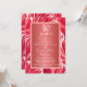Este Convite de Aniversário do Casamento tem uma elegante caligrafia de roteiro preenchida por folhas de tons vermelhos e cor-de-rosa. Este design de caligrafia elegante vai impressionar seus convidados e não apenas! Você pode personalizar este Convite com seus detalhes de aniversário de casamento.