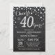 40º Aniversário do Chalkboard Black and Silver Invitation. Quarenta Aniversário de Casamento. Fundo do Diamante Glitter Preto e Lata de Calkboard. Prata Confetti. Aniversário Adulto. Mulher ou Festa de aniversário masculina. Para mais personalização, clique no botão "Personalizar" e use nossa ferramenta de design para modificar este modelo.