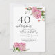 Cartão de convite de aniversário de surpresa para o tema floral russo, com ilustração aquosa de peônia rosa e verde. O texto diz "40 e fabuloso!"
