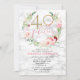 Convites 40 e Fabuloso Marble Floral Rosa e Dourado Anivers
