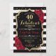 aniversário de 40 anos Convite para, design branco preto Elegante com brilho falso. Listras pretas e brancas com rosas vermelhas. Perfeito para uma bolsa mensageifesta de aniversario elegante.