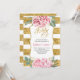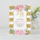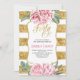 40 Convite de Aniversário - Flores de Aquarela Rosa Esbranquiçadas e Douradas Listras Luminosas