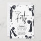 Modern stylish birthday party invitation black watercolor bow and modern script. Classy and elegant, simple and modern invitation.