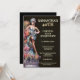 The overall design creates a strong contrast between deep black and radiant gold, giving the invitation a luxurious, evening-event feel. It evokes a sense of sophistication, glamour, and celebration, ideal for a formal masquerade party, black-tie event, or Gatsby-inspired milestone birthday.