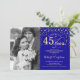 45º Convite de Aniversário de Casamento com Foto. Design elegante em ouro e azul-real de safira com letra de script e confete. Pode ser personalizado para mostrar qualquer ano de casamento. Saúde para 45 anos!