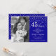 Convite de 45º Aniversário de Casamento com Foto. Design elegante em azul real safira e prata com fonte manuscrita e confetes. Pode ser personalizado para mostrar qualquer ano de casamento. Saúde por 45 anos!