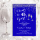 Convite de aniversário de casamento de 45 anos azul real. Parabéns por 45 Anos! Design elegante em azul safira e prata. Apresenta taças de champanhe, fonte de letra cursiva e confetes. Perfeito para uma celebração sofisticada de 45 anos de casamento. Convites Zazzle impressos ou modelo digital para download instantâneo. Pode ser personalizado para mostrar qualquer ano! Personalize com seus próprios detalhes.