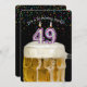 Número 49 velas em caneca de cerveja com confete colorido em preto para o convite para a 49ª festa de aniversário.