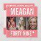 Vermelho-coral, rosa e branco, 49º convites de aniversário de lado duplo. Um design simples gráfico brilhante no qual você pode adicionar três fotos da sua aniversariante. Personalize esses convites de aniversário de fotos com seus próprios detalhes de evento, nome e idade de aniversário, lidos atualmente por 49. Outras cores e itens correspondentes estão disponíveis. Gráficos e design exclusivos por www.mylittleeden.com