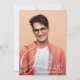 Convide os convidados para a sua festa de formatura com convites com uma foto na frente com a palavra Formando em letra chic, seu nome e seu ano de graduação. Uma grade de três fotos no verso é impressa com as informações da sua parte em azul ou qualquer cor - você pode mudar a cor com nossas ferramentas de edição. MAIS CORES e designs em nossa loja, incluindo anúncios, cartões salve a data e postais.