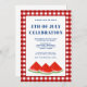 Convide familiares e amigos para comemorar com este convite de 4 de julho. É decorada com melancias de aquarelas em um fundo de verificação de búfalos vermelho e branco. Facilmente personalizável. Este convite festivo é perfeito para qualquer tema de celebração do dia 4 de julho. Use a Ferramenta Design para alterar o tamanho, o estilo ou a cor do texto. Porque nós criamos a nossa trabalho de arte, você não encontrará esta imagem exata de outros designers. Original Watercolor © Michele Davies.