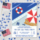 Convites 4 de julho Festa de Piscina Vermelho Branco e Azul