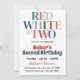 Convites 4 de julho, segundo aniversário Vermelho Branco e