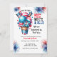 O gênero de 4 de julho revela o convite de festas de um sorvete com colheres azuis e vermelhas que incorporam a bandeira americana. Um design perfeito para um gênero de verão. Você pode substituir os detalhes por seus próprios e fazer com que esse gênero sorvete revele para impressionar os convidados no dia da independência.