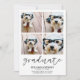 A frente inclui 4 fotos em uma colagem moderna com uma fonte de script de tendência para "formando". A parte traseira inclui um design moderno de Meio século com uma área para informações de festa de formatura. A cor branca de fundo pode ser alterada na área de design avançada. Este design mínimo é leve e inclui apenas letras pretas e brancas. Isto pode ser utilizado para qualquer formando - segundo grau, universidade, escola de formando, escola de medicina ou mesmo escola de comércio.