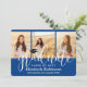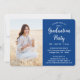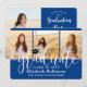 Compartilhe a alegria de um segundo grau ou formandos e convide a família e os amigos a celebrarem com a colagem personalizada de 4 fotos convites reais, azuis e brancos. Todas as imagens e textos são simples de personalizar e as cores são fáceis de mudar usando a ferramenta design Zazzle. Este modelo é formatado para uma festa de formatura, mas pode ser facilmente personalizado como um convite ou um cartão de anúncio de casa aberta. Simplesmente mude o texto para incluir quaisquer detalhes de sua escolha, como nomes de pais, honras especiais, título de grau, citação de inspiração favorita, planos futuros de formandos ou novo endereço. Se houver algum texto não desejado, simplesmente exclua-o. O design apresenta um fundo azul real, um boné de conselho de argamassa preto e branco, uma caligrafia moderna com script de tendência, uma elegante tipografia clássica e quatro fotos de sua escolha, como fotos de mais velho ou imagens da cerimônia de início. Este convite de formatura é uma na moda para anunciar uma comemoração especial. Parabéns ao formando!