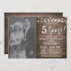 Convite de 5º Aniversário de Casamento com foto personalizada. Fundo de Madeira Rústica. Luzes de Corda. Preto e Branco. 1º, 2º, 3º, 4º, 5º, 10º, 15º, 20º, 25º, 30º, 35º, 40º, 45º, 50º, 55º, 60º, 65º, 70º, 75º, 80º, Qualquer Ano. Aniversário de Adulto. Festa de Aniversário de Mulher ou Homem. Para personalização adicional, clique no botão "Personalizar" e use nossa ferramenta de design para modificar este modelo.