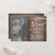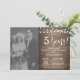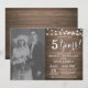 Convite de aniversário de 5 anos de casamento com foto personalizada. Fundo de madeira rústica. Luzes de corda. Preto e Branco. 1º, 2º, 3º, 4º, 5º, 10º, 15º, 20º, 25º, 30º, 35º, 40º, 45º, 50º, 55º, 60º, 65º, 70