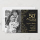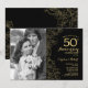 Convite de 50º Aniversário Com Foto - Floral Preto e Dourado. Design moderno com desenhos de esboço botânico e fonte de letra script. Cartão de convite simples e moderno perfeito para uma celebração de bodas de ouro de cinquenta anos com estilo. Pode ser personalizado para refletir qualquer ano de casamento. Convites impressos da Zazzle ou modelo digital para impressão instantânea.