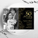 Convites 50º Aniversário Com Foto - Floral Preto e Dourado