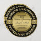 Placa comemorativa de aniversário de casamento de 50 anos, elegante e glamorosa. Preto e dourado com detalhes em diamantes. Cavalo e carruagem de casamento em preto e dourado. Texto personalizável. O conto de fadas continua.