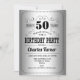 50º Convite de aniversário. Folha de prata e design preta retro elegante. Pode ser personalizado em qualquer idade!