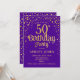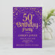 50º Convite de aniversário. Design elegante em roxo real e ouro brilhante. Possui fonte de script na moda e confetti. Envie-me uma mensagem se precisar de idade personalizada.