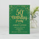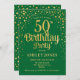 50º Convite de aniversário. Design elegante na floresta, verde esmeralda e ouro brilhante. Possui fonte de script na moda e confetti. Envie-me uma mensagem se precisar de idade personalizada.