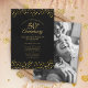 Apresentando delicados corações de ouro confetem num fundo preto. Personalize com seus detalhes especiais do aniversário de 50 ouros em tipografia elegante de ouro e foto especial no verso. Projetado por Thisnotme©