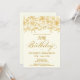 Rosas de ouro de linha aberta elegantes criam a borda superior perfeita. O fundo branco de marfim lhe dá um sofisticado brilho quente e a caligrafia acrescenta um toque luxo. Este convite faz parte da Coleção de Rosas Dourados de Luxe. Contém modelos para papelaria de suite de aniversário, sinais de boas-vindas e decorações de festas.