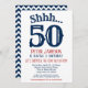 Um divertido e surpreendente convite de aniversário de 50 anos, marinho azul, branco e vermelho, para o marco.