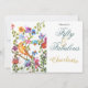 Um Convite à Celebração 50º e Fabuloso - Lindas Flores Whimsical, Blossoms e Borboletas, criadas com estampas de pata de cão pintadas criativamente com aquarela pelo designer. Colorida, delicada, mas vibrante e divertida. Você nunca verá nada como esses impressões, pois eles são exclusivos do designer, então seja único e diferente e encanhe seus amigos e família com este lindo design com um pássaro amarelo. Veja todos os acessórios correspondentes