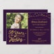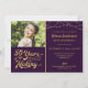 Convide seus convidados com este convite de 50 anos em roxo e ouro e apresentando tipografia moderna, mas retrô, de 50 ANOS NO FAZER e permite personalizá-lo mais, adicionando sua foto (atual ou de sua juventude) e seu ano de nascimento "est 19XX" embutido no design. Observe que o plano de fundo roxo pode ser alterado; clique na guia PERSONALIZAR para selecionar outra cor. (DICA DA FOTO: para obter resultados mais rápidos/melhores, escolha uma foto com o assunto no meio e/ou faça um pré-recorte para uma forma semelhante, conforme mostrado ANTES de carregar e ela preencherá o espaço de fotos fornecido perfeitamente.) Entre em contato com o designer se quiser que este design seja modificado ou em outro produto.