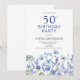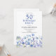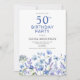 Prepare-se para a festa com este convite floral azul de 50 anos. Fácil de mudar o texto. Bonito aquarela botânica de flor silvestre.