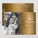 Convite de 50º aniversário com foto - Floral Branco Dourado. Design moderno com acentos de desenhos botânicos e fonte de letra script. Cartão de convite simples e moderno perfeito para uma celebração de aniversário de casamento dourado e sofisticado. Pode ser personalizado para refletir qualquer ano de casamento. Convites impressos da Zazzle ou modelo digital para impressão instantânea.