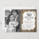 Convites 50º Aniversário com Foto - Madeira Dourado Branco
