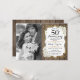 Convite de 50º Aniversário de Casamento com Foto. Design rústico em branco com dourado falso brilhante. Apresenta padrão de madeira, fonte script, rosas brancas e confetes. Pode ser personalizado para qualquer ano! Mensagem-me se precisar de mais personalização.