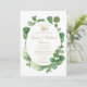 Com delicadas folhas de eucalipto em aquarela, este convite de aniversário de casamento de 50 anos, botânico e elegante, pode ser personalizado com as informações do seu evento especial, com um fundo dourado no verso. Concebido por Thisisnotme©