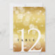 Adicione sofisticação às comemorações de 50º aniversário de casamento do ouro com este cartão de mesa, que contém uma elegante inscrição e um confete hexagonal num fundo de folha de ouro. Personalizar com o número da tabela. O reverso mostra design idêntico. Design © W.H. Sim. Mais informações em zazzle.com/expressionsoccasions