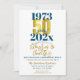 Uma bela festa de aniversário de 50 anos ou convite de celebração. Um fabuloso design de tipografia de efeito azul e ouro com muito espaço para os detalhes do seu partido - perfeito para anunciar uma celebração para uma festa de 50 anos. Este convite de cartão plano de na moda apresenta datas de casamento e de aniversário de 50 anos.