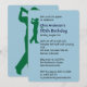 Convite de aniversário de golfe com a imagem de uma bandeira em verde, no verso mostra um verde com este é o meu feliz texto de lugar. Você pode mudar para qualquer idade de aniversário que quiser. todas as informações sobre o convite podem ser mudadas para sua própria ocasião. Morra