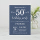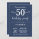 50º Convite de aniversário com fundo azul. Aniversário Adulto. Homens ou Mulheres no Dia Convidam. 13 15 16º 18º 20 21rua 30 40º 50º 60º 80 de 70 100º, qualquer idade. Para mais personalização, clique no botão "Personalizar" e use nossa ferramenta de design para modificar este modelo.