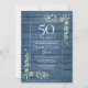 Apresentando um delicado verde-jardim de aquarela em um fundo de madeira rústica azul, este convite de na moda pode ser personalizado com suas informações especiais de comemoração de 50 anos, com um ouro no sentido inverso. Projetado por Thisnotme©