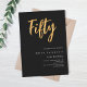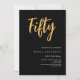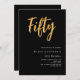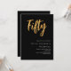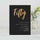 Um convite moderno e na moda para uma 50ª festa de aniversário para ele e para ela. O fundo preto clássico e a palavra Cinquenta escrita com letras douradas falsas grandes. Personalize e adicione um nome e detalhes da parte. Texto branco.