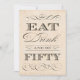 Festa de aniversário personalizável e elegante / convite de janto de aniversário com as palavras Comer, Beber e Ser Cinquenta.