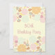Modelo de convite para celebrações florais elegante, personalizado, da 50ª festa de aniversário da mulher, com lindos, modernos, contemporâneos, grandes, ousados, coloridos, cor-de-rosa, azul, laranja, amarelo e castanho, cores vetoriais Ilustrações cromatemáticas, flores decorações de cima e de baixo sobre um bonito fundo amarelo pálido. Na moda, rico, classe, chique, feminina, personalizada, convites para comemorações de festas de aniversário de cinquenta / cinquenta / 50 anos. Pode ser utilizado em qualquer idade: 51, 52º, 53º, 54º, 55º, 56º, 57º, 58º, 59º. Estas celebrações fabulosas, sofisticadas, giras, bonitinhas, tendas, vibrantes e modernas convidadas de festas para aniversários femininos são decoradas em ambos os lados / têm impressão frente e verso duplo / são impressas em frente e trás. Bonita e alegre, alegre, alegre, colorida, convites para o verão, perfeito para festas de primavera e verão para uma mulher, mas também adequado para qualquer época do ano. Todo o texto na frente e no verso é totalmente personalizável/personalizável para atender às suas necessidades. Se precisar de ajuda para personalizar seu produto, entre em contato comigo através da minha loja e eu ficarei feliz em ajudar. NOTE: Todos os produtos do Zazzle possuem imagens impressas em formato plano.