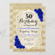 Convites 50º aniversário - Douradas faixas Rosas azuis reai