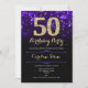 50º convite de aniversário. Design púrpura elegante com ouro brilhante. Apresenta na moda diamante, luzes e fontes de script. Homens ou mulheres convidam no dia. Perfeito para uma festa de aniversário adulta na moda. Personalize com seus próprios detalhes. Envie-me uma mensagem se precisar de mais personalização. Impressos convites Zazzle ou modelo de impressão digital instantânea para download.