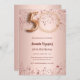Um convite para fotos moderno e na moda para uma festa de aniversário 50ª. Um fundo rosa de gradiente dourado, decorado com estrelas. Personalize e adicione os detalhes da sua festa.